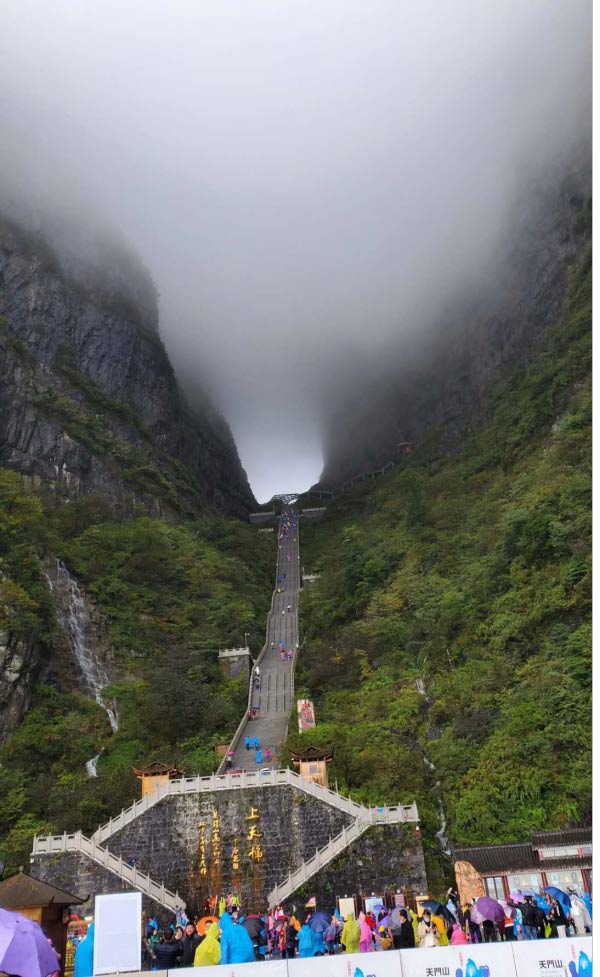 站在洞口,俯視天梯,上面依然在堅(jiān)持努力爬行的人們,大概是懷著一種信仰,相信爬完這999級(jí)臺(tái)階后,會(huì)有長(zhǎng)長(zhǎng)久久的幸福!